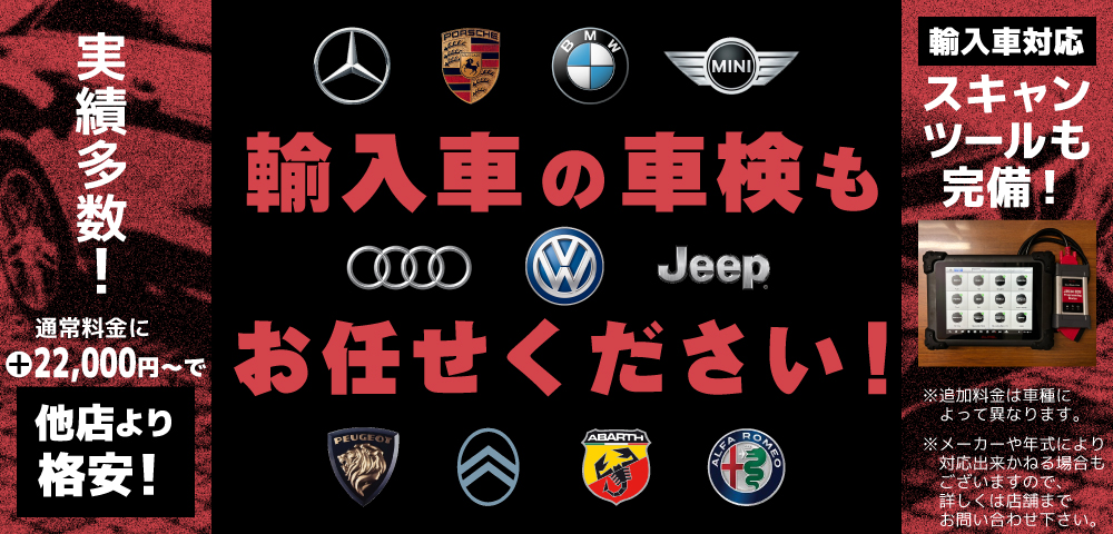 当店では上記のすべて、ホームページに記載してある車検基本料に含まれていますので、ご安心ください。
