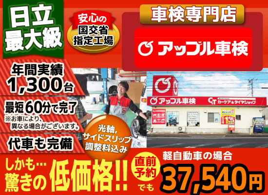 アップル車検・日立滑川店では、多くの日立市・常陸太⽥市・⾼萩市・北茨城市・那珂市・東海村エリアのお客様のご愛顧を頂き、おかげさまで年間車検台数1,300台を突破!